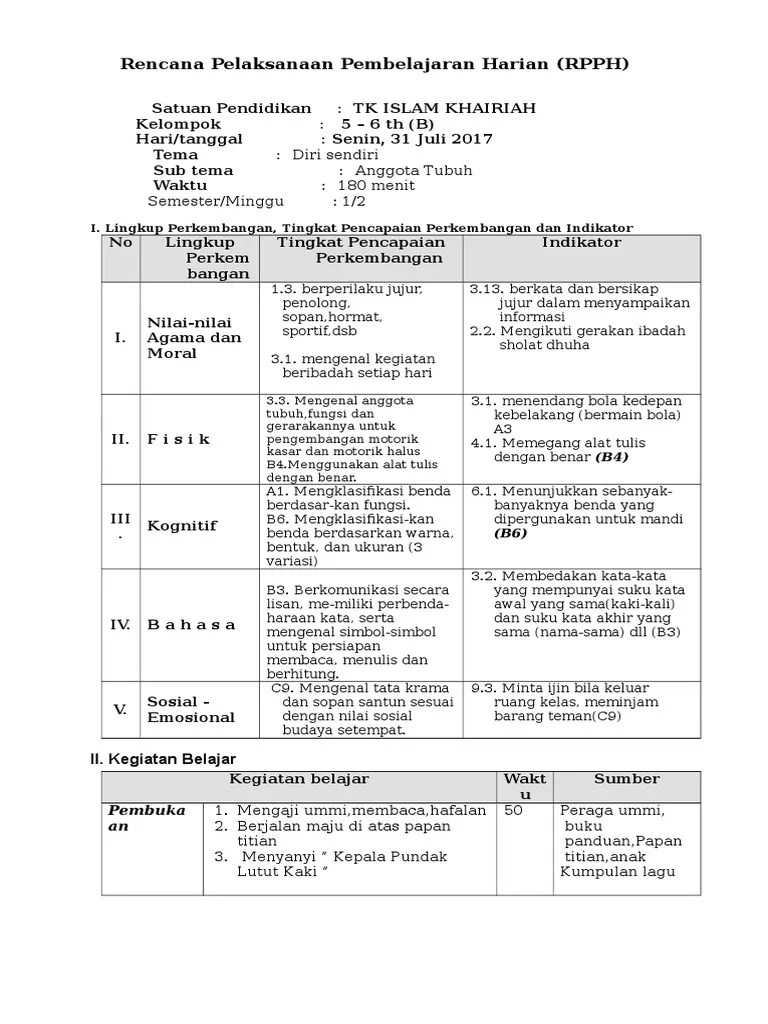 Apersepsi anak mengetahui nama anggota tubuh, gunanya, jumplahnya, jenis kelamin. Contoh kurikulum ktsp (tk/paud/ra/kb/tpa), pada kesempatan ini saya post contoh kurikulum ktsp (tk/paud/ra/kb/tpa), setelah lumayan lama abstein, hehe. Posting lebih baru posting lama beranda. 1.1, 2.6, 3.1,4.13.3,4.33.6,4.6 kelompok : Contoh rpph paud tema panca indera.identitas diri anggota tubuh ciri ciri tubuh kesukaan dan panca indera. Contoh rppm dan rpph tema diri sendiri kurikulum 2013 12012021 contoh rpph paud sentra seni tema diri sendiri kurikulum 2013 format doc disini. Contoh rpph paud tema diri sendiri tubuhku kurikulum 2013 contoh rpph rkh sentra bahan alam paud tema binatang 2017 cuitan doc rpph kb b smt1 minggu 03 panca indera ainin alkarim 1 rpph paud tema diri sendiri kurikulum 2013 documents 1 587853026e 15 rkh tk b semester 1 rpph tk b smt 1 minggu 1 8 paud jateng. Melengkapi gambar mata ,hidung dan mulut kelompok 2 menyebut dan menyusun huruf menjadi. Akhlakul karimah terhadap diri sendiri. Contoh rpph paud sentra seni tema diri sendiri kurikulum 2013 format doc disini. Nam, fm, kog, bhs, sosem. Diharapkan dengan contoh rpph/ rkh sentra seni dan kreativitas paud tema diriku 2017/2018 ini dapat membantu anda menemukan referensi yang tepat untuk membuat administrasi sendiri. Rencana pelaksanaan pembelajaran harian (rpph) sentra persiapan usia :