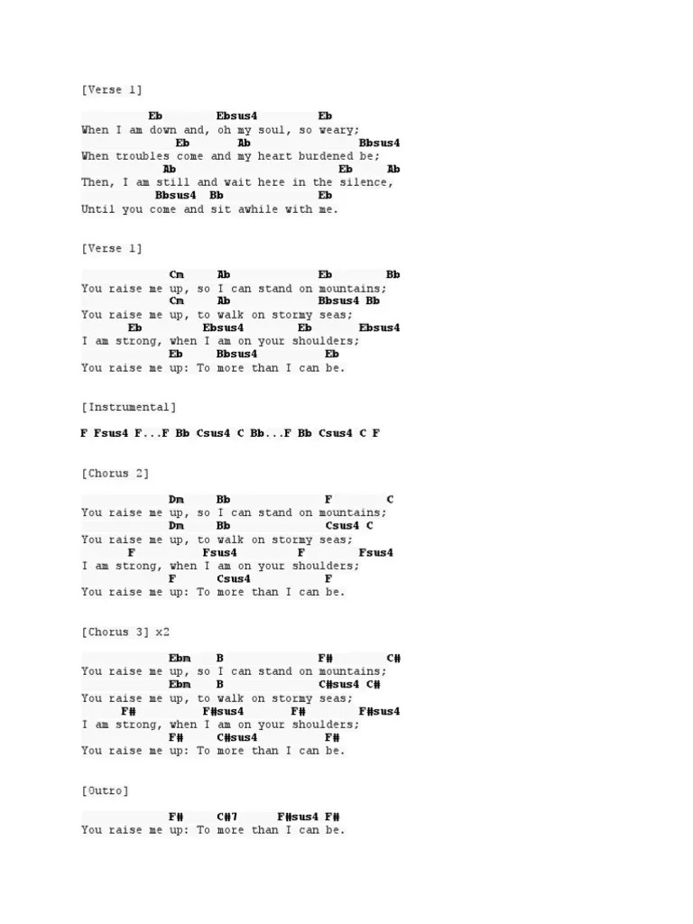 Am you raise me up. Berikut lirik dan chord lagu you raise me up dari josh groban. Chord you raise me up verse : Eb ebsus4 eb when i am down and, oh my soul, so weary; 2005 sjöng det irländska pojkbandet westlife in låten på singel.